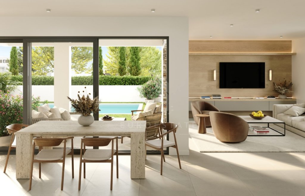 The spacious villa has 6 bedrooms in total, 4 bathrooms, a big living room an open plan kitchen and dining area. There is a double parking area and private gardens with a swimming pool.